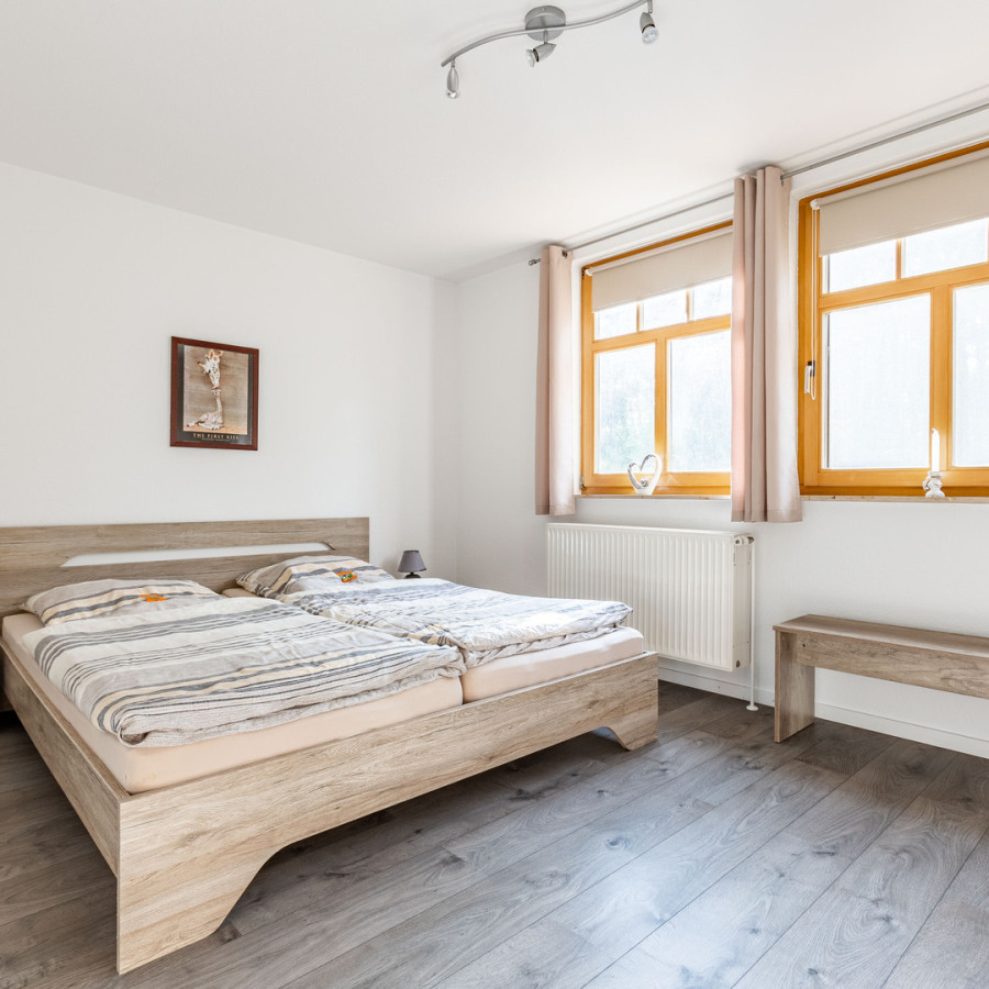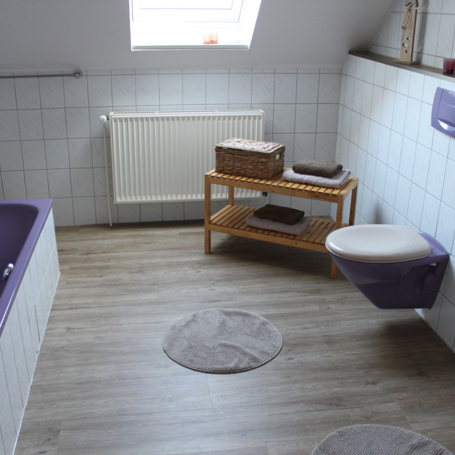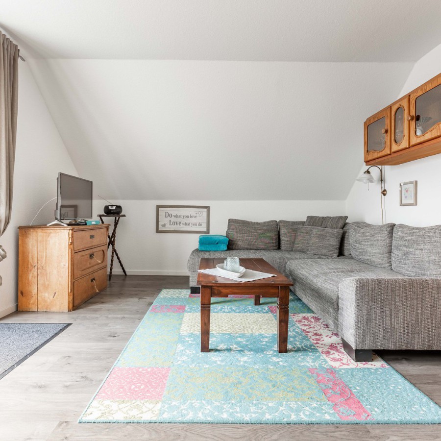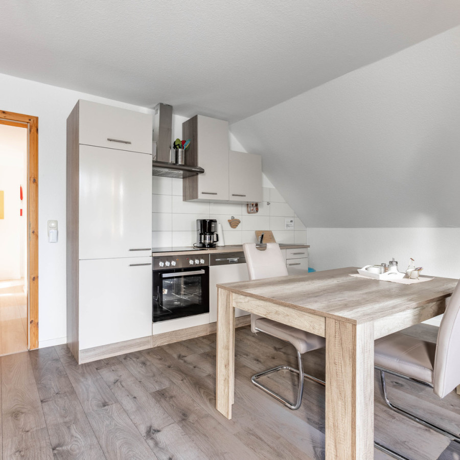 Unsere "kleine" Ferienwohnung hat 56 qm Wohnfläche. Das kombinierte Wohnzimmer mit Essecke und Küchenzeile ist sehr gemütlich eingerichtet und über eine Außentreppe erreichbar. Das Schlafzimmer hat ein Doppelbett, gegenüber ist gleich das Badezimmer mit Dusche und Badewanne.